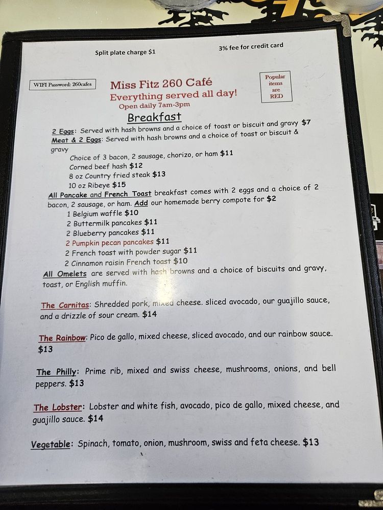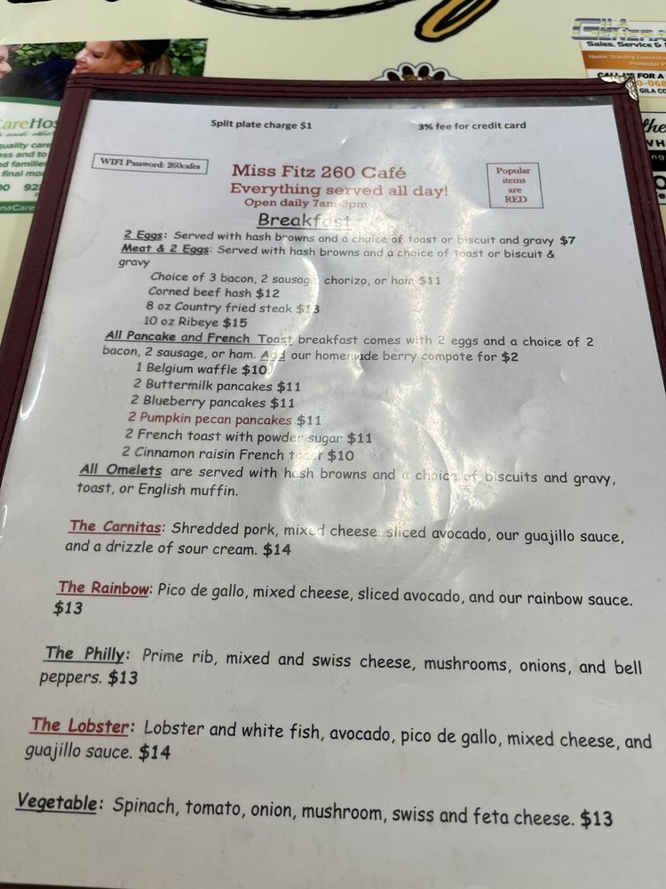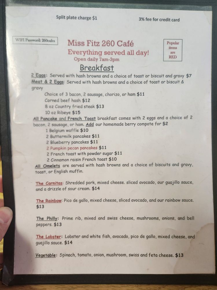 Miss Fitz 260 Cafe Menu (2025 Update)