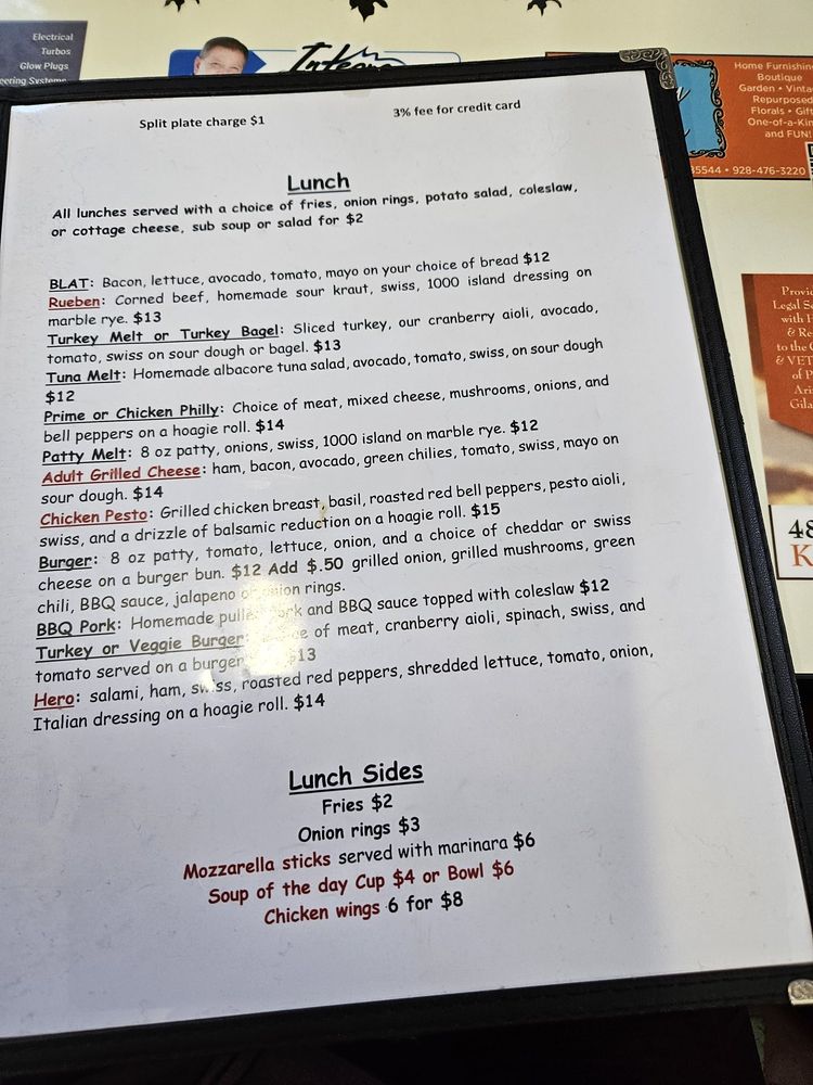 Miss Fitz 260 Cafe, located in Payson, AZ, is a charming American restaurant with a focus on comfort food. Offering vegan and vegetarian options, this women-owned establishment welcomes all guests with its casual atmosphere and friendly service. Customers rave about the large portions, flavorful dishes, and reasonable prices. The cafe's unique touches, like flavored coffee creamer and homemade pies, add to its appeal. Whether you're looking for a hearty breakfast, a satisfying lunch, or a relaxing brunch spot, Miss Fitz 260 Cafe has something for everyone. The positive vibes and welcoming staff make this hidden gem a must-visit for locals and tourists alike. Enjoy a meal with your four-legged friend at this dog-friendly restaurant and soak in the joy that permeates every corner of this quaint establishment.
